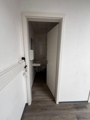 Eingangsbereich (14qm), Garderobe (14qm), Kursraum (70qm) und Küchenzeile & Toilette